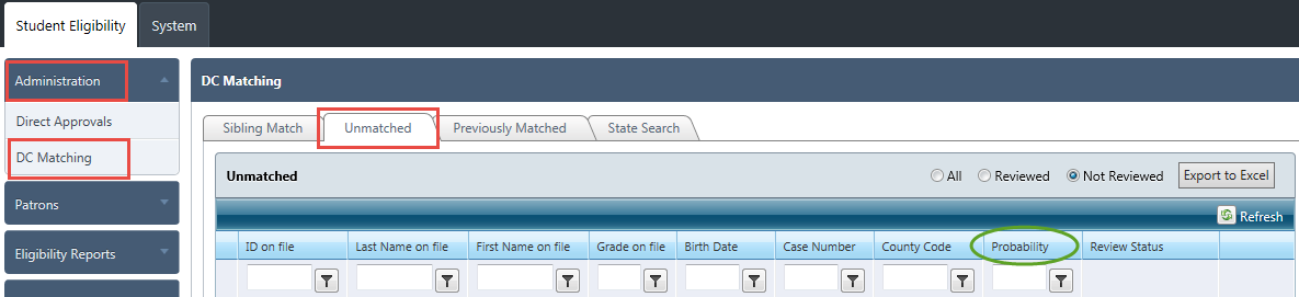 The iMATCH system continues to be upgraded. The most recent changes will allow us to add counties for district matches and adds the probability factor. The addition of counties will be accomplished over the summer.