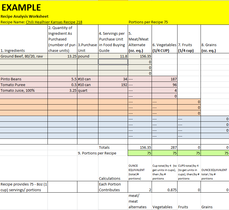 Additional Yield Information for School Meals