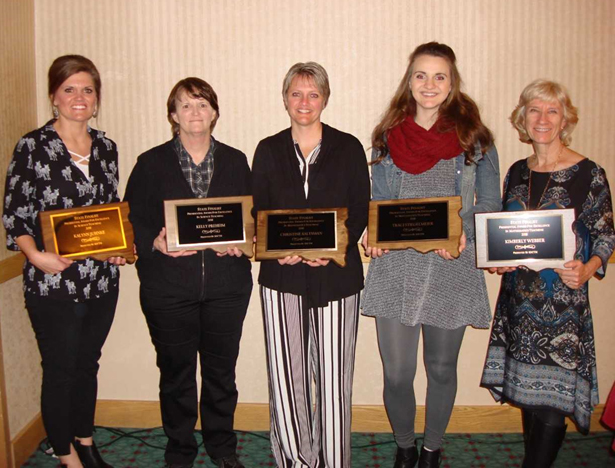 PAEMST finalists (l to r): Katie Juhnke (Parker Elementary), Kelly Preheim (Armour Elementary), Christine Saltsman (Gettysburg Middle School), Traci Stiegelmeier, Kim Webber (Rapid City Area School District) (Not pictured: Brenda Velasco [St. Elizabeth Seton Elementary, Rapid City])