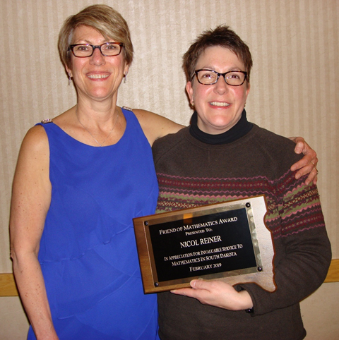 Nicol Reiner (right), South Dakota Department of Education, Friend of Mathematics Award, pictured with Cindy Kroon