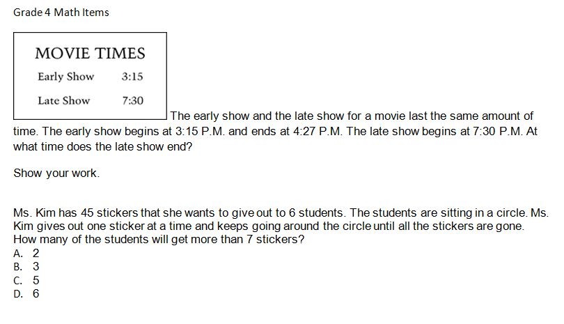 The assessments include multiple-choice and constructed- response items balanced between the two types. When results are released, a portion of the items are released on the internet, NAEP Question Tool